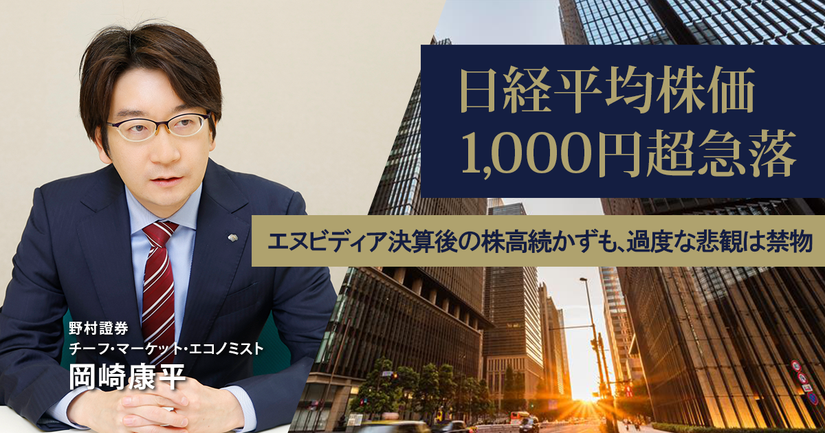 日経平均株価1,000円超急落 エヌビディア決算後の株高続かずも、過度な悲観は禁物 野村證券・岡崎康平