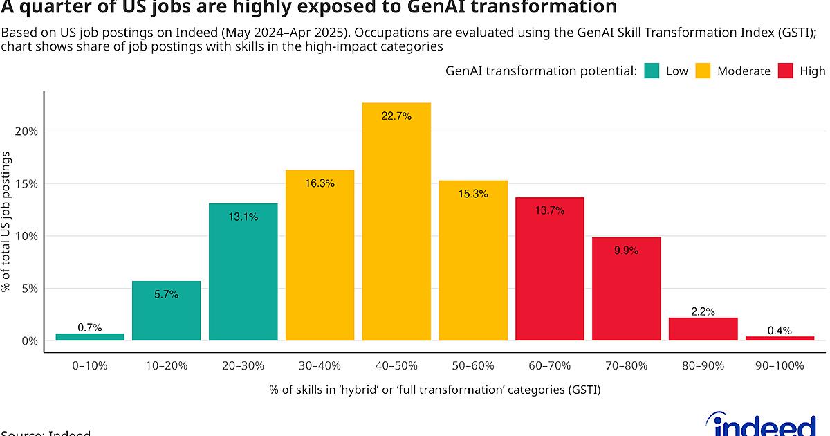 過去1年間に掲載された求人の26%は生成AI導入で大幅に代替される。米インディード最新分析の衝撃
