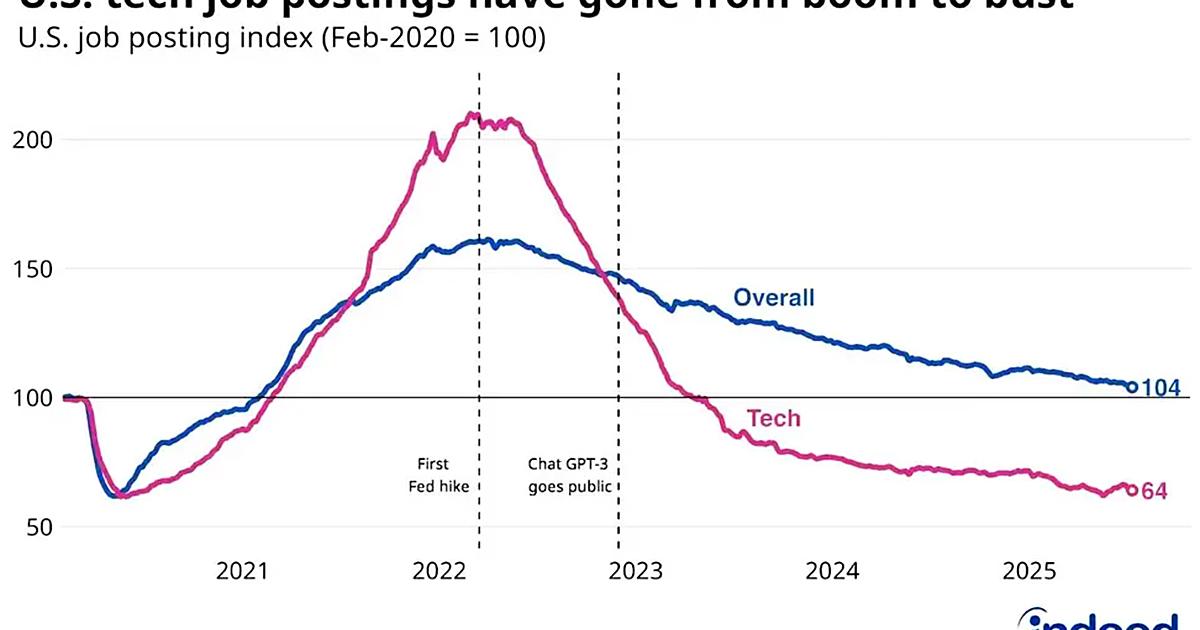 ChatGPT公開後の2年間で「求人が激減した」テック系職種トップ10。モバイル開発は7割減