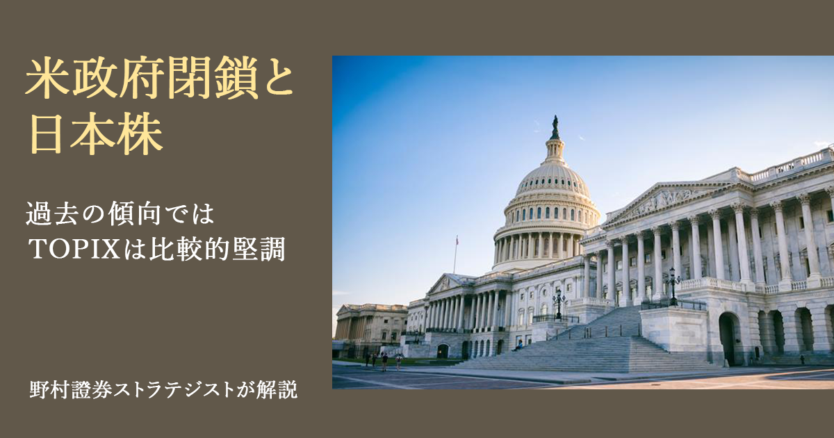 米政府閉鎖と日本株 過去の傾向ではTOPIXは比較的堅調 野村證券ストラテジストが解説